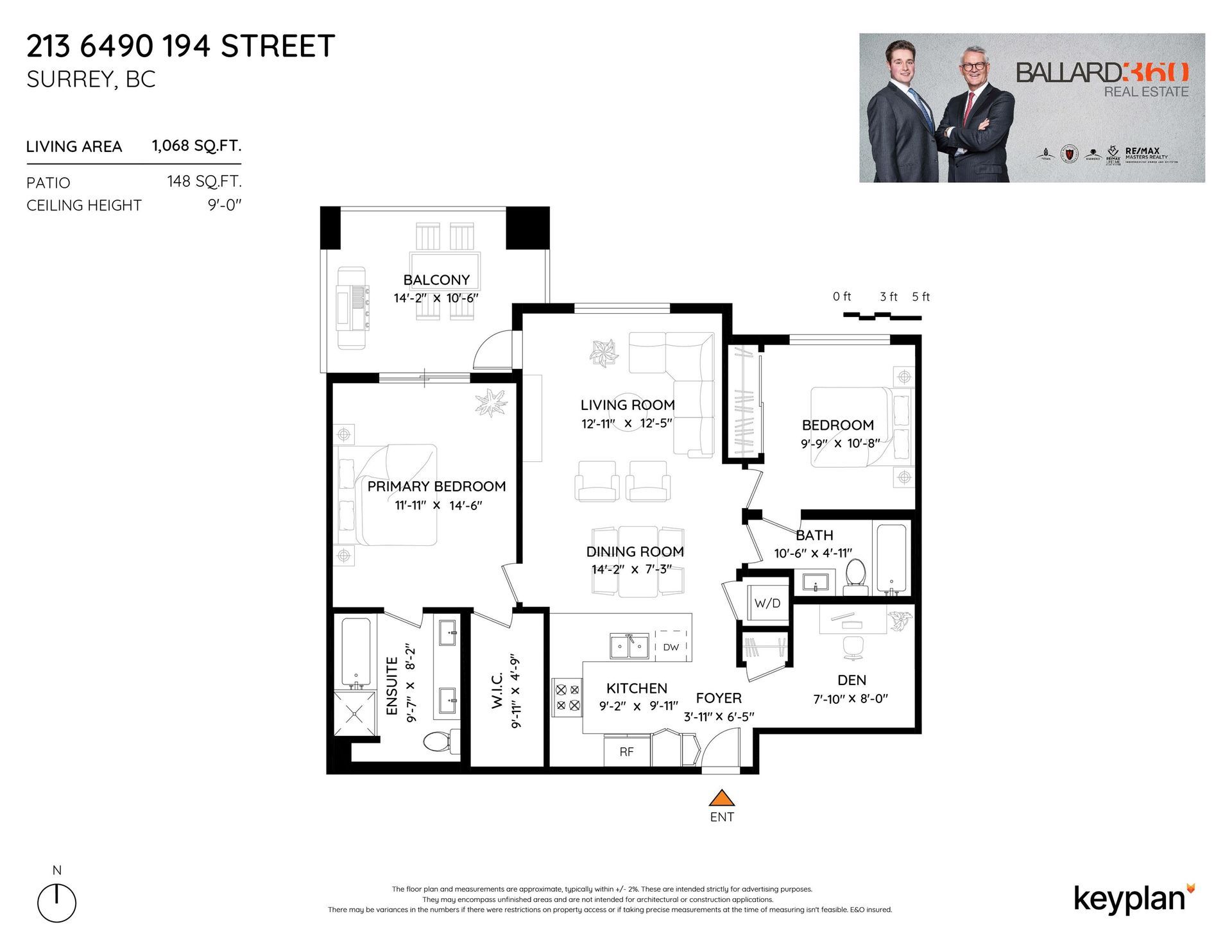 Ideal 2 BED + DEN, 2 BATH condo in WATERSTONE! North-facing with beautiful natural light and a private + quiet outlook over adjacent green space. Full-size SS kitchen appliances, granite counters, 9’ ceilings, and a fully covered walk-out balcony (bbq ok)! Sought after floorplan with opposing bedrooms both facing green space & both ensuite. Primary bedroom includes an amazing 10' walk-in closet and 5-piece spa-inspired bathroom with under-lit cabinetry + heated floors! Separate den works perfectly as a home office, playroom, or hobby area. Resort-style amenities include gym, pool, hot tub, sauna, games room, fireside lounge, event room, and movie theater! 2 big parking stalls + 2 adjacent roll-up storage lockers! Less than a 10-min walk from future Clayton Heights Skytrain!! Offers FEB 25