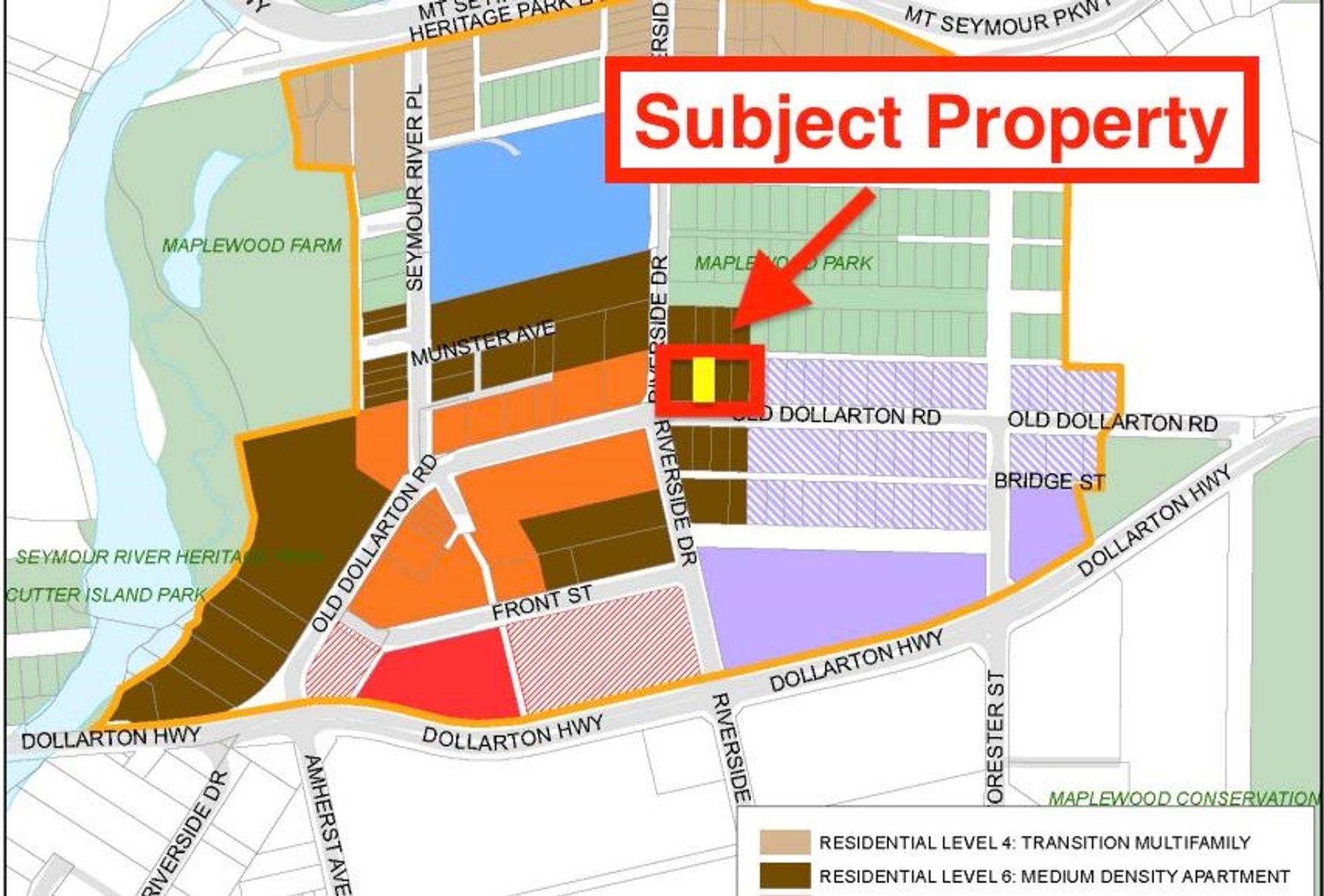Charming, recently updated, 2,461 sq.ft. 4 bed, 2 bath house in Maplewood! Hardwood floors, tons of flat backyard space, and up / down separate living: 3 bed + 1 bed! Located steps to Canadian Superstore, Maplewood Farm, and Northwoods Village (Tim’s, Stong’s, Starbucks). Priced BELOW ASSESSMENT, ideal opportunity to hold and live in, or rent out! This 6,100 sq.ft (50 x 122) lot offers potential for 15,250 of buildable density under the OCP. Forming part of a probable future land assembly on the corner of Old Dollarton Rd & Riverside Drive, the OCP calls for a 4 – 6 storey development of up to 2.5 FSR under “Res Level 6: Medium Density Apartment.” Both neighbouring properties are listed at higher future development values showing the opportunity of buying today and holding for development!